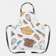 Cocine con estilo con este delantal que presenta un patrón de doodle sin fisuras dibujado a mano. Con ollas, sartenes, un gorra del chef, whisky, cuchillo, espátula y pequeños productos repartidos en un fondo de color gris lavanda, este moderno y alegre diseño de cocina es perfecto para cocineros caseros, panaderos o como un divertido regalo para los aficionados a la cocina.