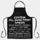 Crear, crear su propio personalizado personalizado todo sobre la cocina de impresión Apron - fondo negro (cambiar a cualquier color) - con una selección ilimitada de colores de correa está hecho de poliéster lavable de máquina, un tejido duradero pero suave de calidad. Su diseño y texto se pueden imprimir de borde a borde por toda la parte delantera del delantal, que viene en tres tamaños: Grande - 34" largo x 27" ancho, Mediano tamaño - 30" largo x 26" de ancho, o Pequeño tamaño para niños - 20" largo x 24" de ancho. Se ofrecen grandes descuentos por volumen para compras masivas múltiples de delantales.