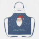 Un delantal de color azul medianoche con la cabeza de ilustracion de Santa Claus y nieve por todas partes. Si te gusta cocinar o si conoces a un amigo que ama pasar tiempo en la cocina para Navidad, ¡puedes agregarle su nombre y dárselo!