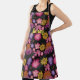 Hermoso Apron florido negro floral es un diseño floral lleno de colores como rosa y amarillo y contiene flores como girasoles, flores y amapolas