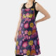 Hermoso Apron con estampado floral púrpura de flores silvestres es un diseño floral lleno de colores como el rosa y el amarillo, y contiene flores como girasoles, flores y amapolas