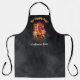 Apron todo-sobre-impreso con Perro caliente animado de época. Fondo de humo con un poster de perritos calientes de antaño.