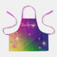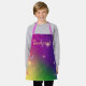 Hermoso diseño de delantal impreso personalizado con mariposas coloridas sobre un fondo de arcoiris gradiente con luces de hadas y destellos abstractos. El texto es totalmente personalizable.