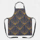 Este delantal tiene diseño art deco de diamantes y triángulos en oro sobre un campo de azul.