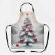 This festive Christmas Holiday design features an art deco Christmas tree with snow and luxury red ornaments. The background is a magical forest in the winter.