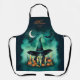 Make your Halloween preparations even more special with our Attractive & Mystical Halloween Witch Conjures Enchanting Spells Amid Glowing Candles And Vibrant Pumpkins Under A Moonlit Teal Sky apron. This design features a mystical witch conjuring spells beneath a teal moonlit sky, surrounded by vibrant pumpkins and glowing candles. It's the perfect accessory for any kitchen lover who wants to bring the Halloween spirit into their cooking space.