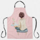 DELANTAL AZUL CON HERRAMIENTAS Y PILAS DE LIBROS
