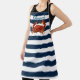 Cangrejo rojo sobre rayas azules marinas; perfecto para los amantes del mar o de la costa.