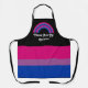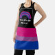 delantal de tamaño medio con una imagen de una bandera de orgullo bisexual y un arcoiris; diseño rosa, púrpura y azul sobre un fondo negro, con una plantilla de texto de personalizable para tu propio nombre o mensaje