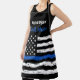 Delgado Apron de la Policía de la Línea Azul - Estados Unidos Diseño de la bandera estadounidense con colores de la bandera de la policía, diseño angustiado . Este delantal de policía personalizado es perfecto para cumpleaños, Navidades, regalos de retiro de la policía o día de los padres para tu oficial de policía. Perfecto para todos los oficiales de policía, agentes del orden y familiares y simpatizantes de la policía. Personaliza con el nombre. DERECHOS RESERVADOS © 2020 Judy Burrows, Black Dog Art - Todos los derechos reservados. Apron BBQ del maestro de parrilladas delgado de la línea azul de la policía