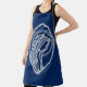 Delantal Bendita Virgen María, encaje blanco, azul marino