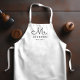 Para la novia y el novio, este delantal blanco presenta al "Sr." en una letra de escritura moderna junto con un apellido y fecha establecida. Esta es una ducha nupcial perfecta o un regalo de boda. El Sr. y la Sra. Parons están disponibles en una variedad de colores.