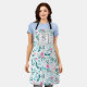 Delantal Blue and Pink Floral Pattern with Monogram & Name