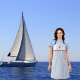 Delantal Blue Nautical Striped Monogram Boat Name Design A