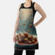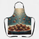 Se ven albóndigas lloviendo en un plato blanco lleno de salsa. La escena tiene una cualidad surrealista y onírica, con hierbas dispersas añadiendo brotes de verde.
