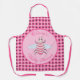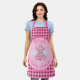 Este impresionante delantal es perfecto para regalar como regalo en una ducha de bebé. El diseño presenta una imagen gráfica de una linda abeja de bebé rosa con piernas negras y ojos turbios. tiene un cuerpo pálido rosa y difuso con rayas rosas brillantes y lindas antenas rosadas en su cabeza difusa. Sus delicadas alitas tienen un patrón azul pálido en las manos. El diseño también incluye girasoles rosados bonitos. El texto es personalizable, por lo que puede incluir el nombre de la futura madre.
