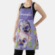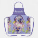 Bonito Pastel Floral Pintado Pintado de color azul morado Pintado de color de agua Mujeres Cocina Apron, con un nombre de personalizable completo. Diseñado desde mi ilustracion original de gatos.