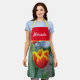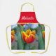 Bonito Floral Pastel Tulip Pattern Woman's Kitchen Apron, con un nombre de personalizable completo. Diseñado desde mi ilustracion original de gatos.