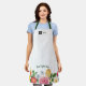 Vestir su floristería o negocio floral con este encantador delantal para todos sus empleados. Añada su logotipo en la parte superior junto con el nombre del trabajador y su etiqueta encima del borde floral en la parte inferior. El borde incluye flores rosas, amarillas y azules. El fondo es un patrón de madera sutil. Las correas son del mismo color verde oscuro que el texto. Ideal para un florista, diseñador floral, entrega de flores, planificador de bodas, tienda de jardines, paisajista y muchas otras profesiones. O solo alguien a quien conoces que le gustan las flores y el diseño femenino.