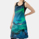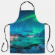 Delantal Borealis de Aurora sobre la costa del mar, montaña