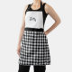 Delantal personalizado de bufanda xadrez. Diseño retro chic en la combinación clásica de colores negro y blanco. La mitad inferior del delantal presenta el patrón xadrez familiar. La parte superior es blanca y personalizada con un nombre impreso en una hermosa letra cursiva. Personalízalo reemplazando el nombre de muestra Betty con el tuyo o cualquier nombre o palabra que desees usar.