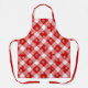 Apron en un patrón grande, profundo, rojo y blanco de manchas de búfalo, con una ráfaga de copos de nieve blancos