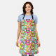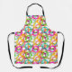 Este delantal tiene un diseño geométrico de tres círculos anidados y repartidos por el diseño en varios colores.