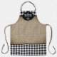 Un diseño bonito, atemporal y clásico de burlap y de control de búfalos en blanco y negro con color de coordinación en las correas y cuello. Un diseño divertido con su personalización y siluetas blancas de utensilios básicos de cocina.