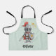 Este delantal personalizado para niños presenta un caballero medieval de dibujos animados lindo y caprichoso con un casco y sosteniendo su espada y escudo.