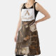 Este encantador delantal personalizado tiene una temática de cafetería con cafeteras sentadas juntas en una mesa rústica de madera. En la parte inferior hay un fondo de madera con varias imágenes de café. Las imágenes se imprimen en forma de pintura acuarela, de diseño cálido y rústico. Al otro lado de la mesa hay pasteles con cubiertos, bastones de canela y granos de café. Un nombre de ejemplo y un primer monograma se imprimen en un tipo de letra beige sobre la parte superior.