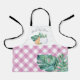 Mi delantal único más vendido está diseñado usando una réplica de mi zorro rojo original con una calabaza blanca sobre un lecho de hojas de palma de monstera. La huella de gingham rosa adorna el fondo. Personaliza con tus nombres. Perfecto como regalo de chef de Acción de Gracias para un niño o para la cocina y el horneado cotidianos. Para ver la línea completa de Victoria Grigaliunas visite www.zazzle.com/dotellabelle