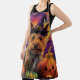 Admire el espíritu de Halloween con este diseño encantador que presenta un perro lindo en un gorra de brujas rodeado de calabazas talladas. Perfecto para añadir un toque de encanto espeluznante a sus celebraciones festivas.