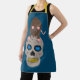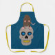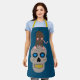 Este impresionante delantal presenta un cráneo gris espeluznante con ojos azules brillantes y dientes amarillos podridos. Encima del cráneo hay una rata marrón con orejas rosas, cola, garras y nariz y ojos azules, La rata tiene una espalda arqueada lista para saltar hacia ti. Un gran diseño para los amantes de las ratas y para Halloween.