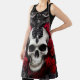Con un cráneo humano feroz y hermoso rodeado de rosas rojas, este mural de pared gótico y oscuro es un regalo excelente para los amantes de las piezas góticas oscuras y románticas.