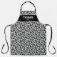 Este delantal "Skull" presenta un patrón de cráneo blanco con un nombre y un título.