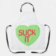 Un corazón de caramelo verde que dice: "SUCK IT".