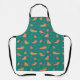 Este Aprons presenta ilustraciones de capibaras flotando en el agua. Estos lujosos capibara se entremezclan con un pequeño naranja. El fondo verde azulado se completa con los tonos marrones, creando una estética caprichosa y alegre.