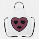 Un corazón de color mauve rojo de baya con forma de cara frunciendo seductoramente en el vacío.