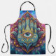 An artistic and detailed representation of the hand of Fatima, a powerful symbol of protection and good fortune, adorned with intricate designs and an all-seeing celestial eye.