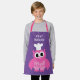 Chef de lechuza rosada, personalizados niños se preparan para el chica. Personalizar con un nombre personalizado. También es ideal para hornear, pintar, dibujar, hacer arte y artesanías y más. Pequeños delantales para los niños. Gracioso dibujo de pájaros animales con el gorra de la cocinera blanca y los ojos grandes adorables. Ilustracion divertido con color de fondo personalizado, es decir, morado.