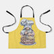 Un Pequeño Aprón Personalizado De Rayas Amarillas Para Un Niño O Un Chica Con La Palabra De Chef Y Un Gnomo Decorando Un Pastel