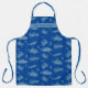 Delantal con estampado de peces y cangrejos en azul. Agregue texto, dicho corto o nombre a la banda ancha en la parte superior del peto. Este delantal largo, con tema marino, es perfecto para el pescador que le gusta cocinar su captura. Azul marino con patrón azul claro de vida marina y pequeñas moscas de pesca. Este delantal también viene en otras tallas.