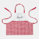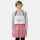 El delantal de la cocina personalizada cuenta con un cheque de gingham rojo clásico con nombre y texto personalizados. Gran delantal de cocina personalizada para niños en Navidad. Y estas madres hijas que emparejan los delantales para cocinar hacen un gran regalo para el Día de la Madre, el Día de los Abuelos, los cumpleaños y otras ocasiones especiales. Puede cambiar el color de fondo rojo y el tipo de letra y tamaño del texto seleccionando "Haga clic para personalizar más".