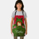 Chica con Apron de nombre personalizado de dibujo de carenado de rana verde. Un lindo dibujo de un chica con una carpa de rana verde sobre un fondo rojo. Diseño divertido para un chica y un gran regalo para Navidades o cumpleaños. Añade tu nombre.