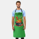 A happy chili or chile pepper jumps into a boiling, flaming stock pot on this kitchen apron for men or women, personalized with your text and color scheme, perfect for looking awesome when cooking in the kitchen or at the grill.
