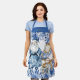 Delantal Chinoiserie Navidades Blue White Floral Santa