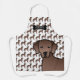 El personalizado original de Destei ilustracion de un lindo color de abrigo marrón chocolate Labrador Retriever perro. El diseño del perro se coloca como un patrón en el fondo del delantal así como un retrato de cabeza más grande en el fondo. La parte superior tiene una silueta de hueso de perro negro junto con un área de texto personalizable para un nombre.
