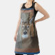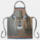 Cerca de un ciervo parado en el bosque, con árboles enmarcados en madera y azul.
