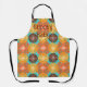 Este delantal tiene un diseño moderno de mediados de siglo de círculos de diferentes tamaños formando círculos concéntricos que se repiten a lo largo del diseño.