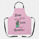 ¡Personalice este cómico "Apron de una persona amable" femenino! Cuenta con un Cactus Verde con flores rosas en una bolsa turquesa y amarilla y la Cómica Cita..."Clásica y un poco Sencilla Abuela"...¡sobre un fondo floral rosa claro! Diseño de arte gráfico original por el artista Kerry Miller